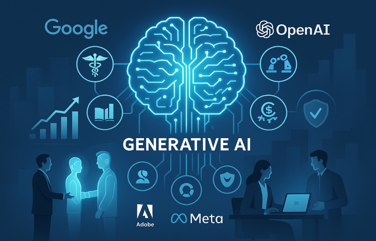 Grandes empresas lideram o avanço dessa ferramenta, como a OpenAi e GoogleAi. Outras empresas que estão em crescente para o uso da IAGen são o Adobe e a própria Meta. A Meta visa na IAGen como uma alternativa para alguns tipos de interações virtuais.